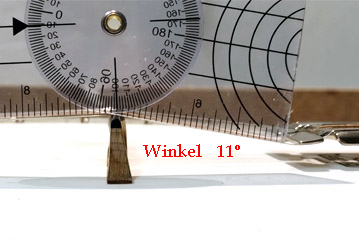 Auch der Knickwinkel der Seite ist für die Schwingungsübertragung von größerer Bedeutung. Ideal ist ein Winkel von 11 Grad. Das heißt aber nicht, dass es sich dabei immer um 11 Grad handeln muss. 11 Grad ist der optimale Winkel für eine Schwingungsübertragung. Der Winkel wird aber noch von anderen Faktoren beeinflusst. So braucht meine 5. Seite eher einen größeren Winkel. Wer sich eingehender mit diesem Thema beschäftigen möchte, dem empfehle ich Euphonics "The science of musical instruments" ISSN 2977-5612 von Jim Woodhouse.* Ich bevorzuge die Benton Bridge mit 16,24 mm Höhe